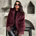 HXAO Women's Fur Coat Women 2024 Plush Burgundy Bomber Jacket Solid Crop Long Sleeve Jacket Warm Winter Coats Woman Casual Coats