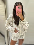 Polka Dot Print Short Coats Women's High Street Long Sleeve Jackets for Women 2025 Elegant Office Ladies Casual Outerwear